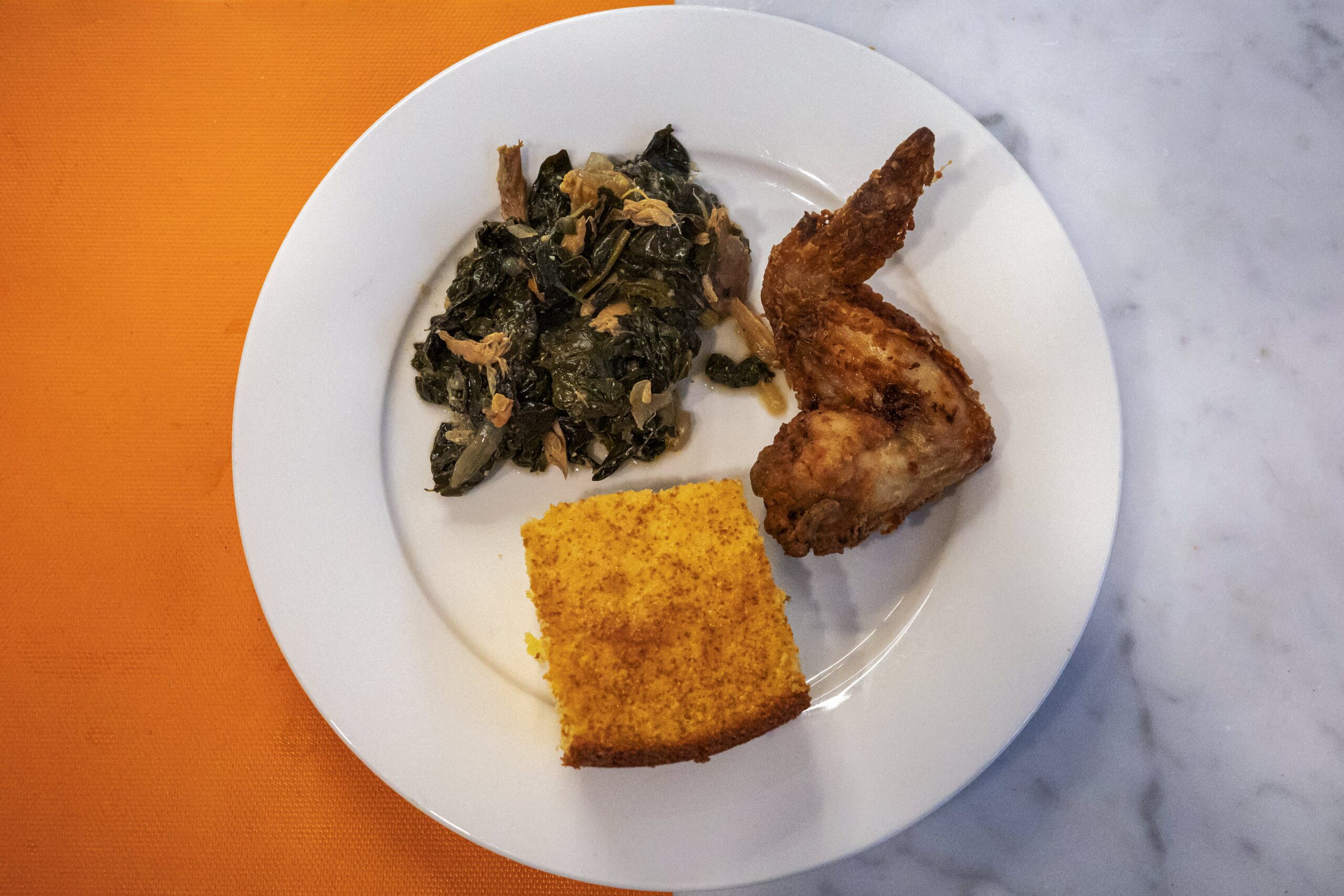 - Candied yams o Collard Greens (cavolo nero, olio, cipolla, aglio, peperoncino, brodo di pollo, pollo, aceto, zucchero e spezia piccante di New Orleans chiamata Cajun)