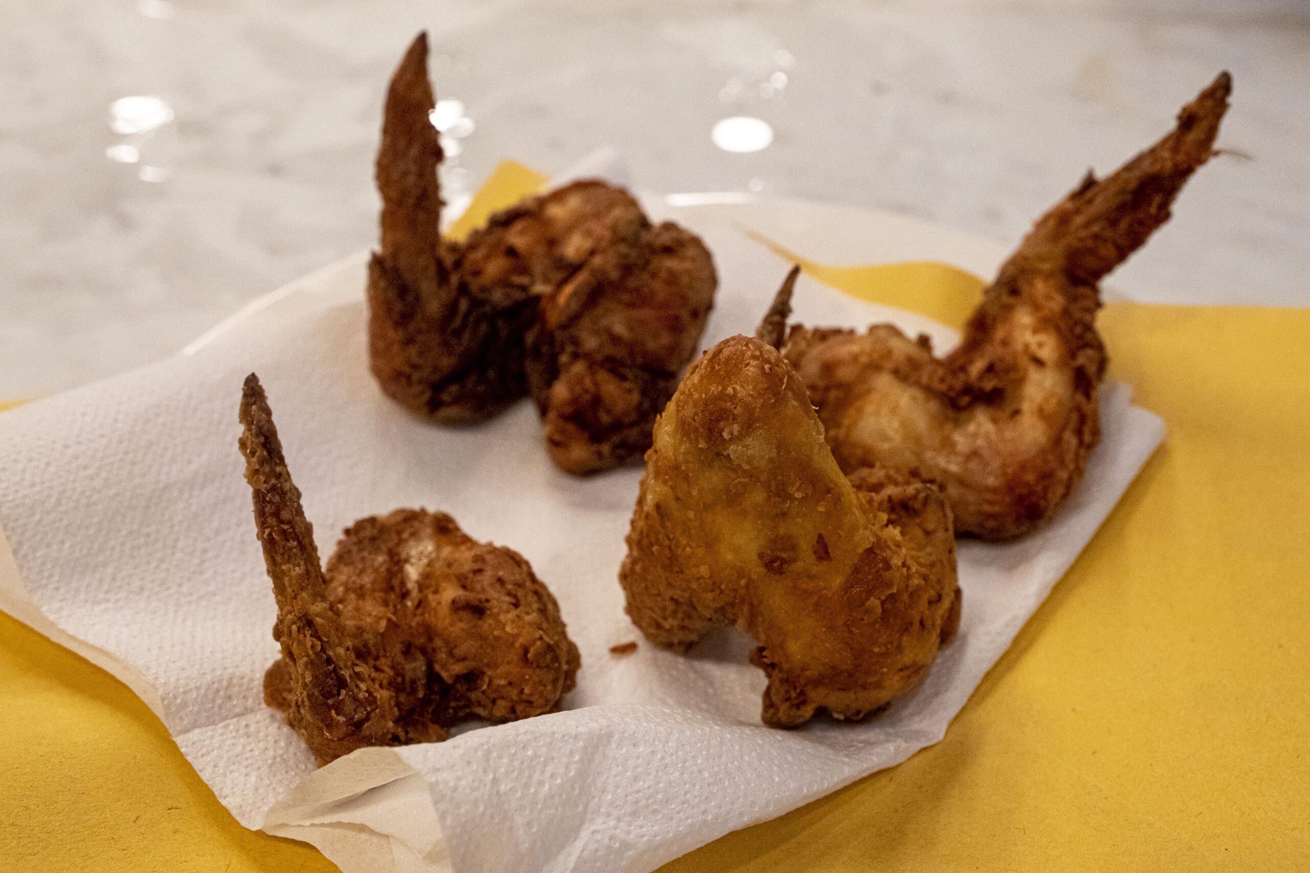 - Gospel Bird o fried chicken, pollo fritto (alette di pollo, latticello, tabasco, sale, aglio, cipolla, farina, paprika, senape in polvere, origano, pepe, olio d’arachidi, peperoncino e altre spezie a piacere)